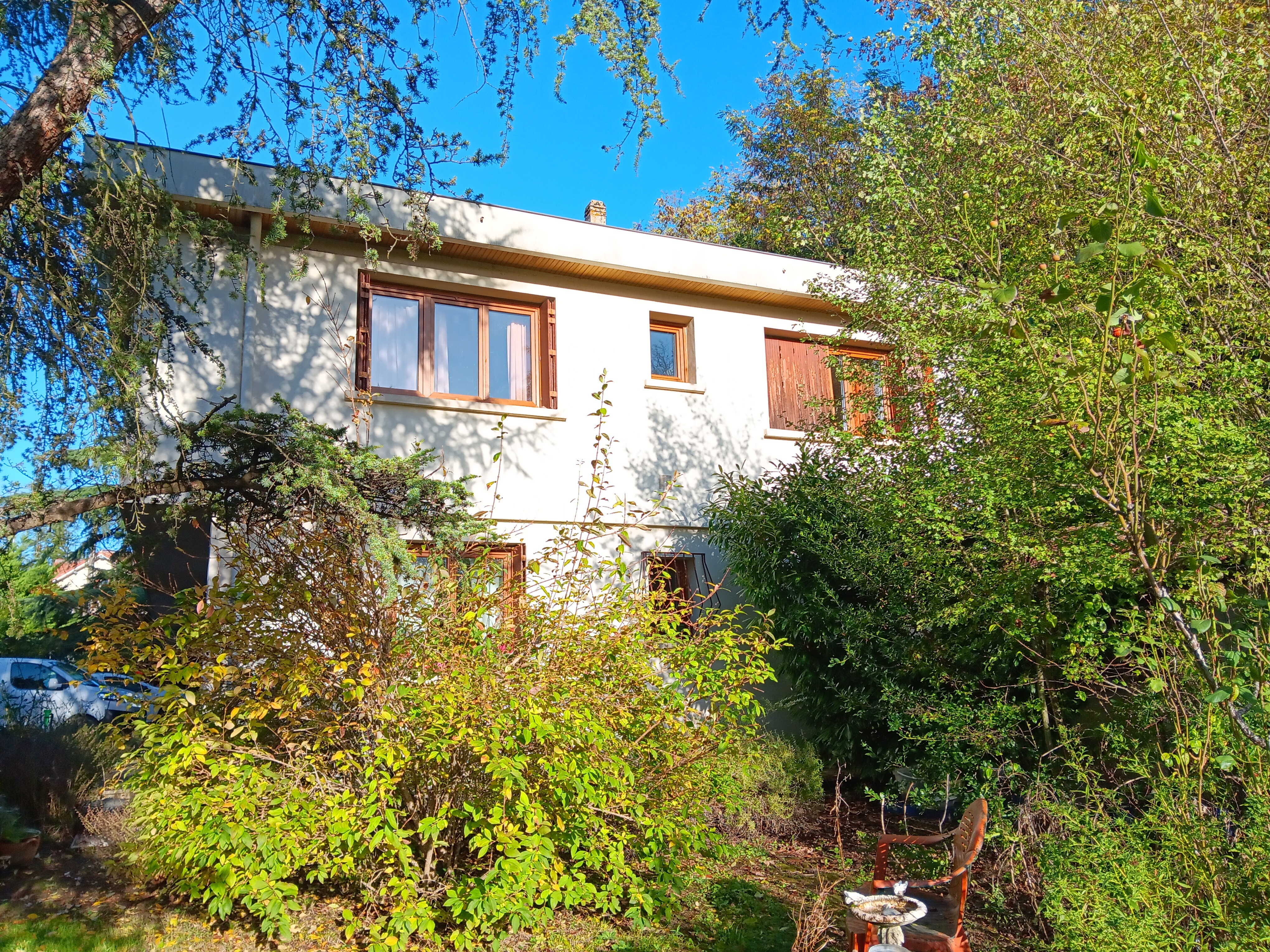 Édifiée sur un parc arboré de 3 500 m2, grande maison de construction traditionnelle, proposant, sur deux niveaux, deux cuisines, deux séjours, trois ou quatre chambres, deux pièces d'eau et deux wc. Vue dominante, grand balcon terrasse, garage, chalet de jardin, chaudière neuve à granulés de bois, excellent état général. Quartier calme, la campagne à quelques minutes du centre ville. Idéal pour faire deux logements distincts, regroupement familial ou profession libérale. Viager libre portant sur une tête, une femme de 74 ans.